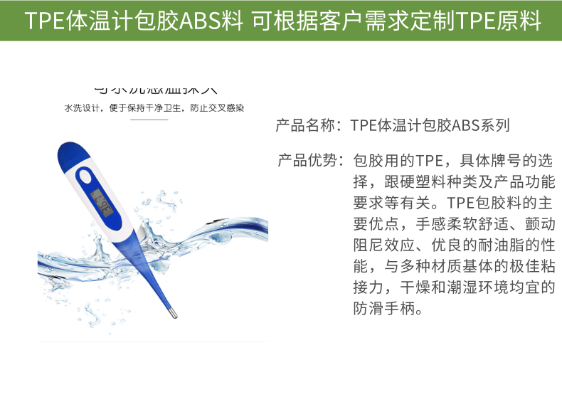 TPE材料運(yùn)用于溫度計(jì),是TPE材料在包膠層面的典型性運(yùn)用之一。